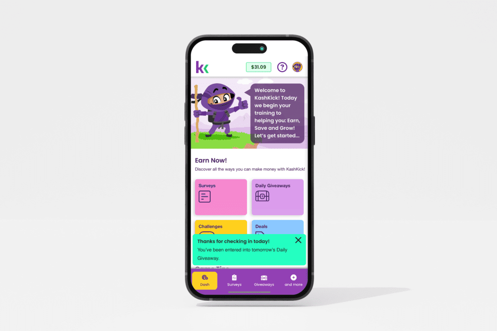 KashKick is a free app that allows members to make real money (not points or gift cards) by taking surveys, trying new products, playing games and shopping online. For example, one moment you could be earning money for taking a survey or playing Solitaire, and the next you could earn a reward just for checking your credit score.