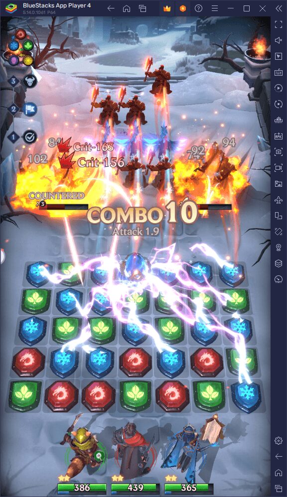 It’s important to note that if you don’t have a certain element of hero on your team, matches of that element will not damage the enemy. This is due to the power of matches being based off the heroes of the matching element.