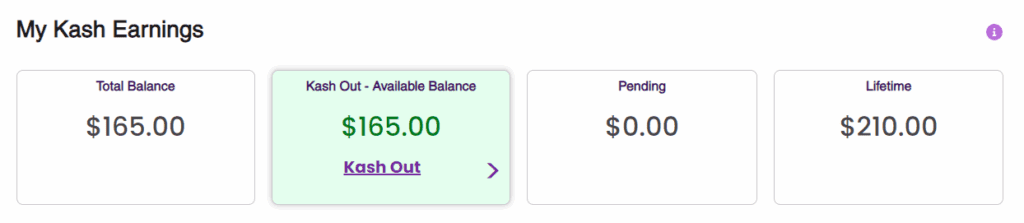 For more detailed cashing out instructions, visit Kash Out Your Earnings.
